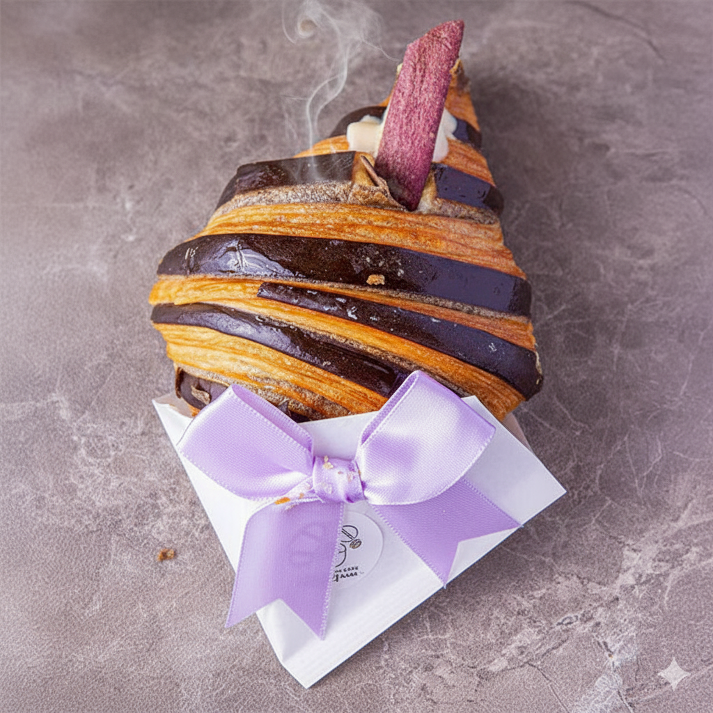 まず目を奪われるのが、何層にも折り込まれたクロワッサン生地の真ん中に、まるで蝶々結びをしたかのようにクリームが絞られた**「リボンクロワッサン」**。その可愛らしいヴィジュアルは、まさに芸術品!