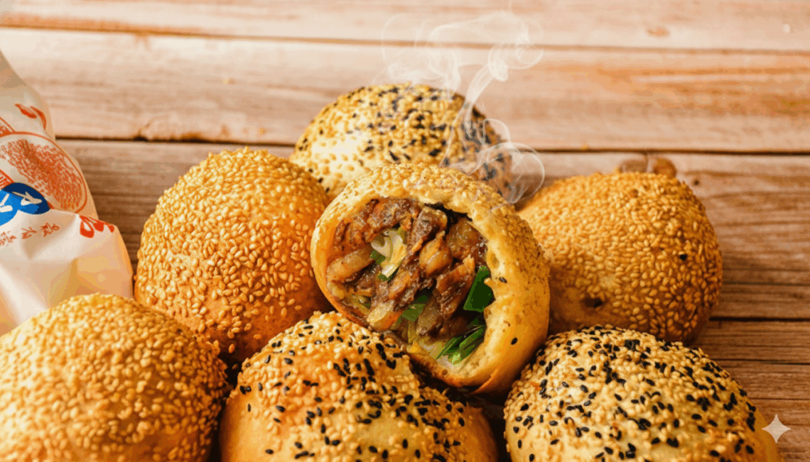 胡椒餅は、肉まんのような生地に、豚肉(または牛肉)の餡とネギをたっぷり包み、特注の窯の内側に貼り付けて焼き上げるという、独特な製法で作られます。この焼き方こそが、外はパリッと香ばしく、中はモチッとした食感を同時に実現する秘訣。お店のガラス越しに、そのダイナミックな調理工程が見えるのも、食欲をそそるエンターテイメントになっています。