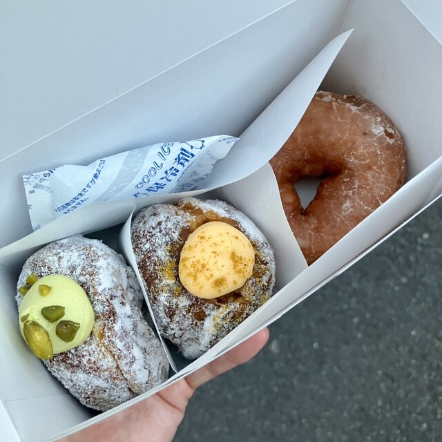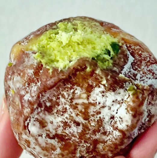 鮮やかなグリーンのクリームが、ドーナツの割れ目から贅沢に溢れています。近年、スイーツ界で確固たる地位を築いたピスタチオ。その味わいを、この「生ドーナツ」がどう表現するのか、期待が高まります。