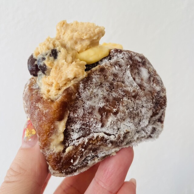口に運ぶと、まずピスタチオ特有の香ばしいナッツの風味が、鼻腔を駆け抜けます。クリームは濃厚そのもの。ローストされたピスタチオのコクと深みが凝縮されており、甘みの中に微かな塩味が感じられます。この塩味が、全体の輪郭を引き締め、味わいに奥行きを与えているようです。とろける生地の優しい甘さと、濃厚でナッティーなクリームの対比が素晴らしく、非常に満足感の高い一品。少し贅沢な気分に浸りたい日に、選びたくなる大人の味わいです。