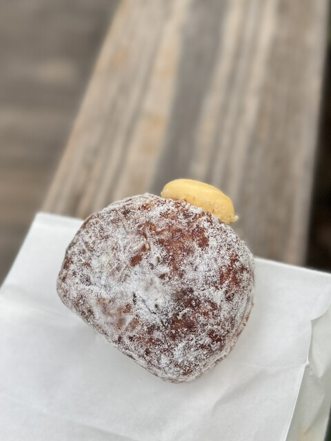 ころんとしたドーナツの側面から、艶やかなカスタードクリームがたっぷりと顔を覗かせています。とろける生地の中に、これでもかというほど詰められたクリーム。その光景は、甘いものが好きな人にとってはたまらないものでしょう。
