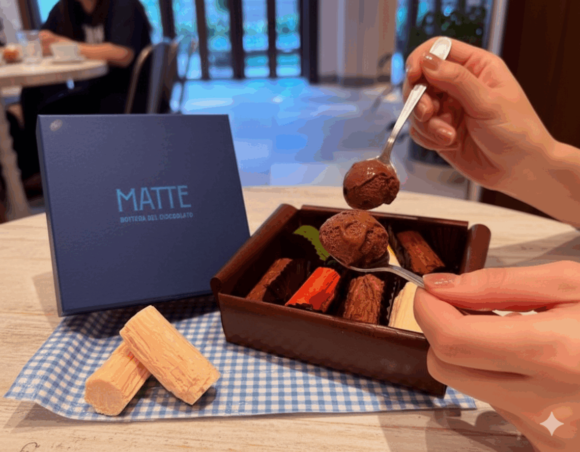 『MATTE Bottega del Cioccolato』は、単に甘いものを消費する場所ではなく、チョコレートという素材の可能性、そしてイタリアの奥深い食文化を「体験」させてくれる場所でした。